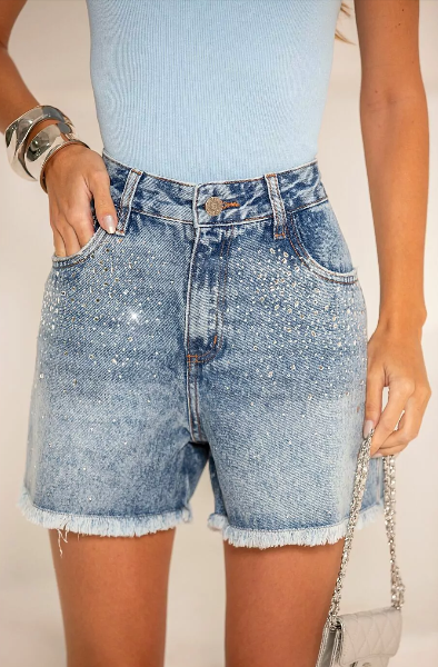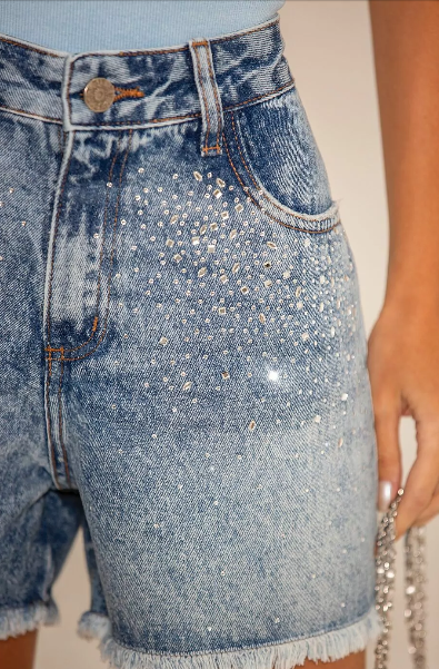 Shorts modelo Boy, confeccionado em 100% algodão. Possui aplicação de hotfix, que adiciona um toque de brilho e estilo à peça. A barra desfiada confere um visual moderno e despojado, ideal para composições casuais e cheias de personalidade.