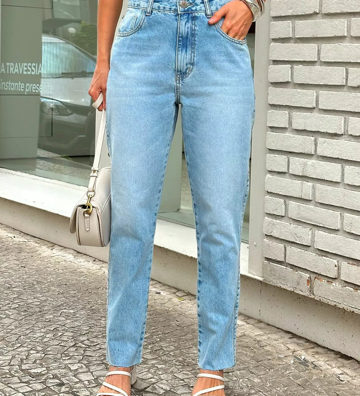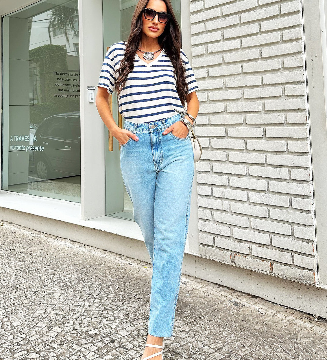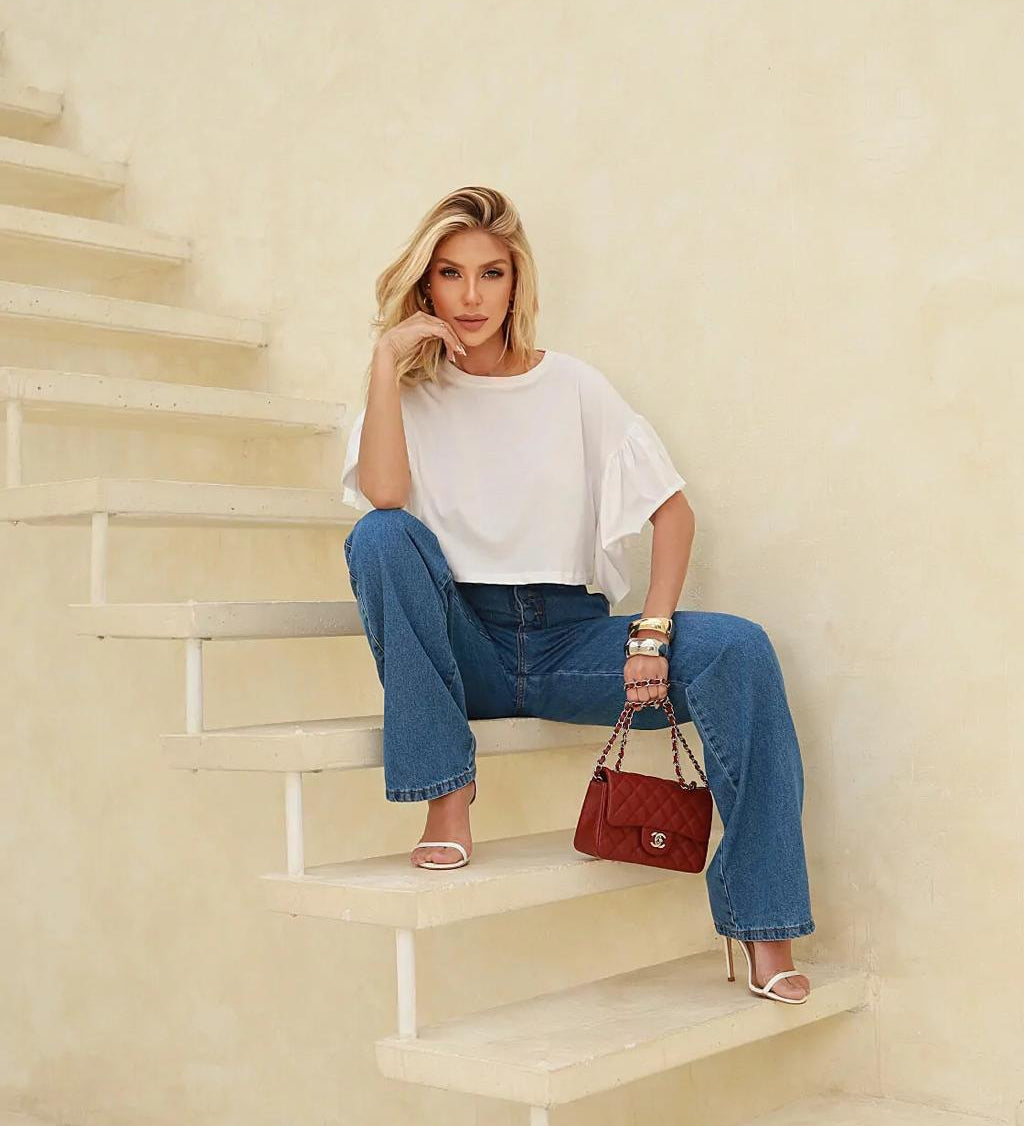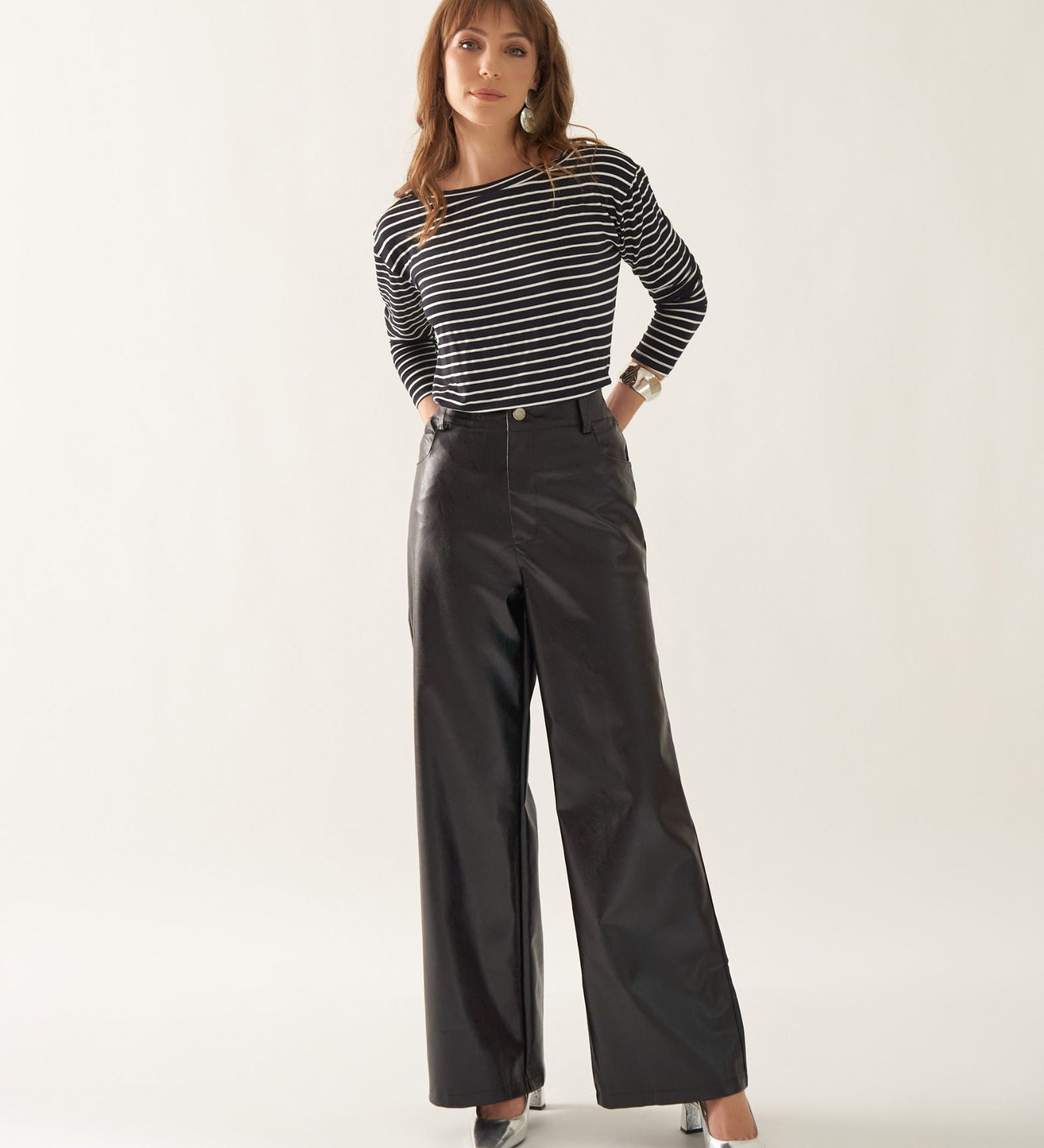 Calça Wide Leg sem Cós com Faixa em Jeans