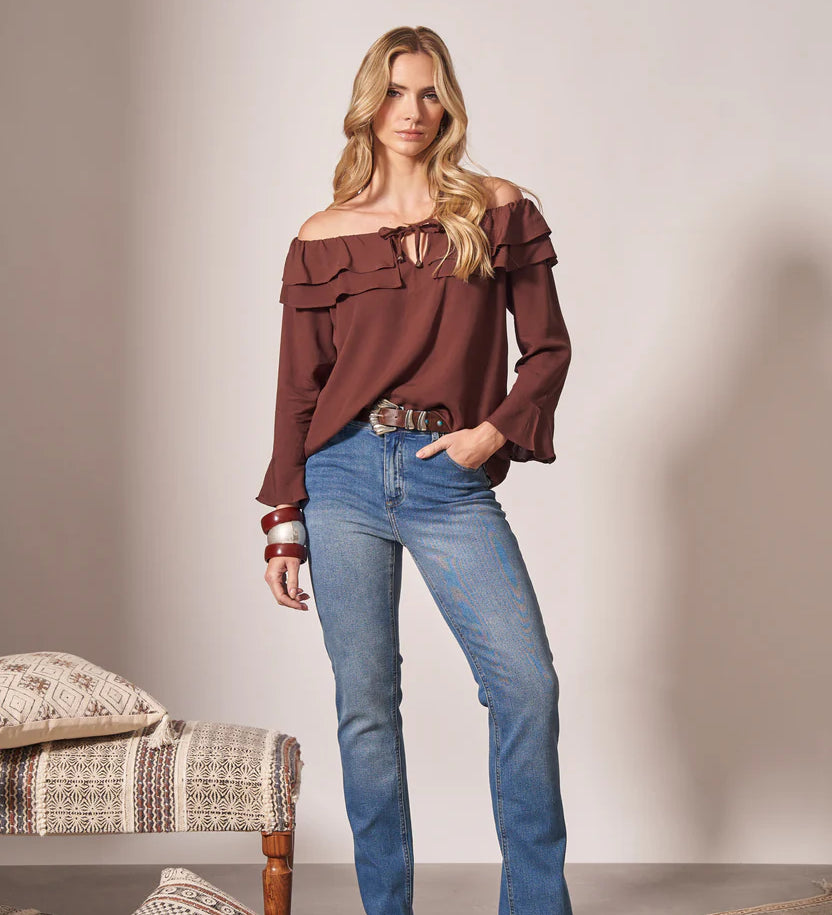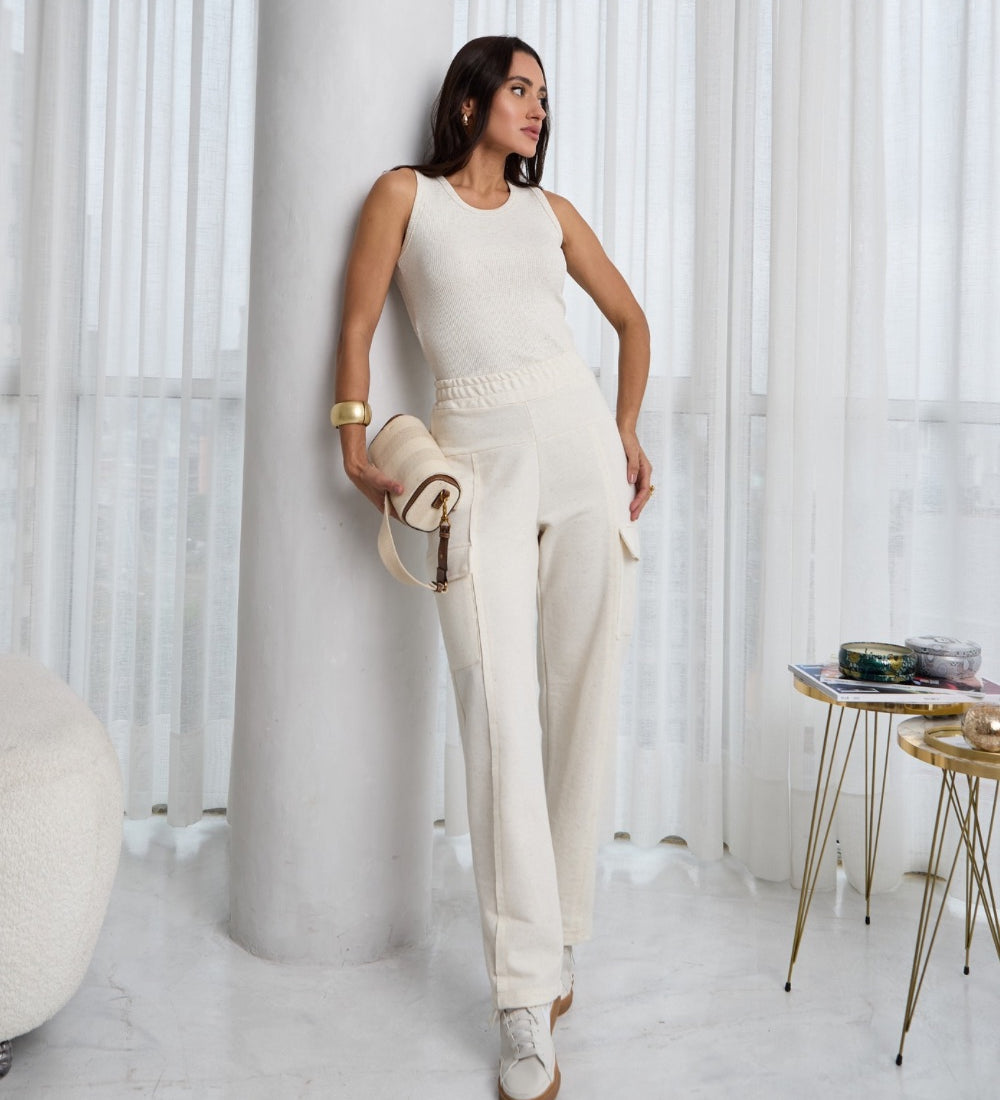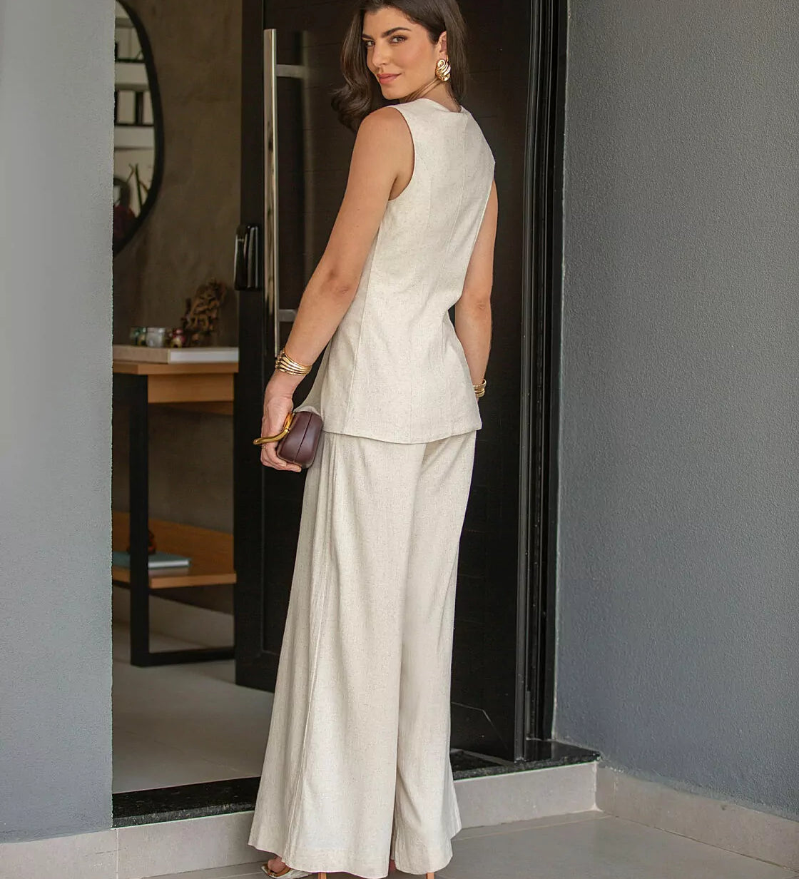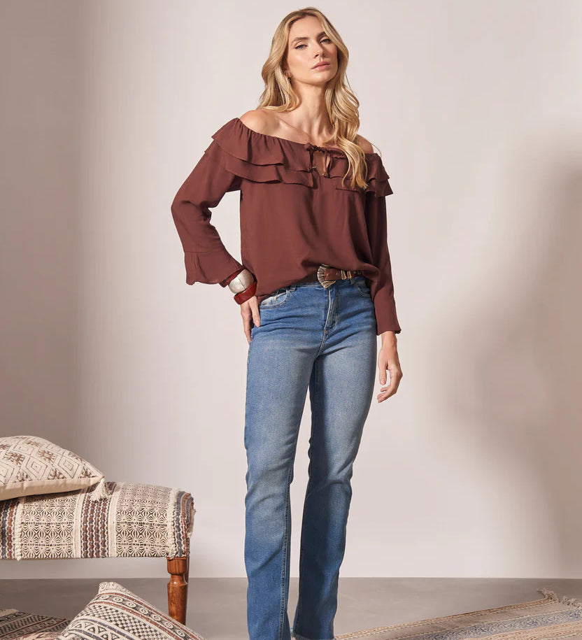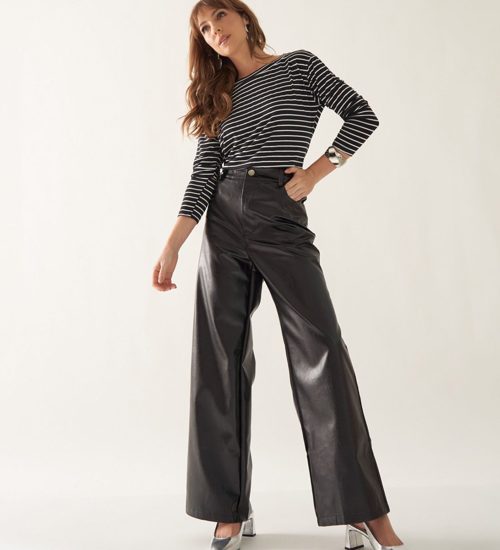 Calça Wide Leg sem Cós com Faixa em Jeans