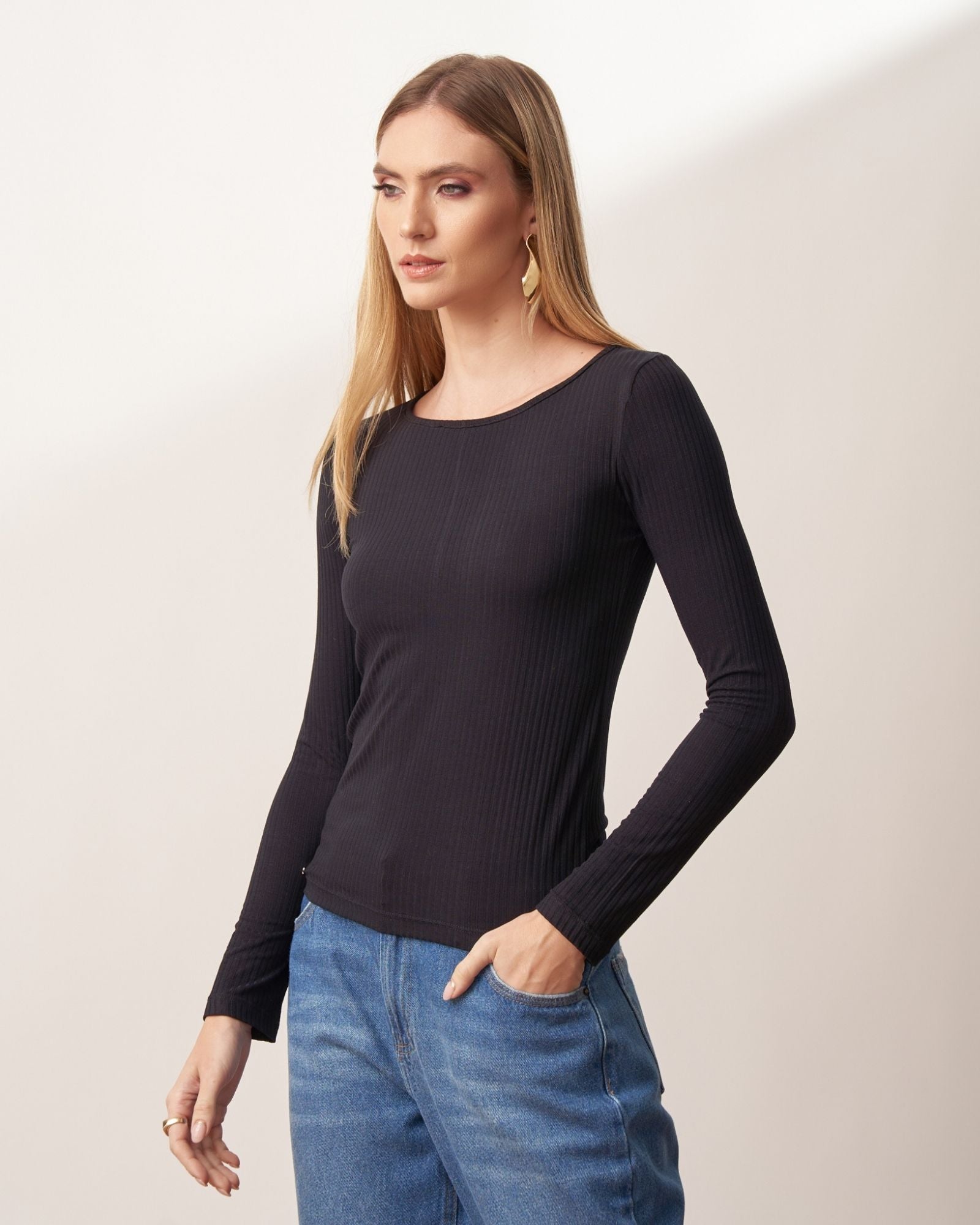 Aposte nesta blusa para garantir conforto e estilo em seu dia a dia. Use-a sozinha ou sob um blazer para um toque extra de sofisticação. Com a Blusa de Malha Canelada, você estará sempre pronta para arrasar
