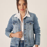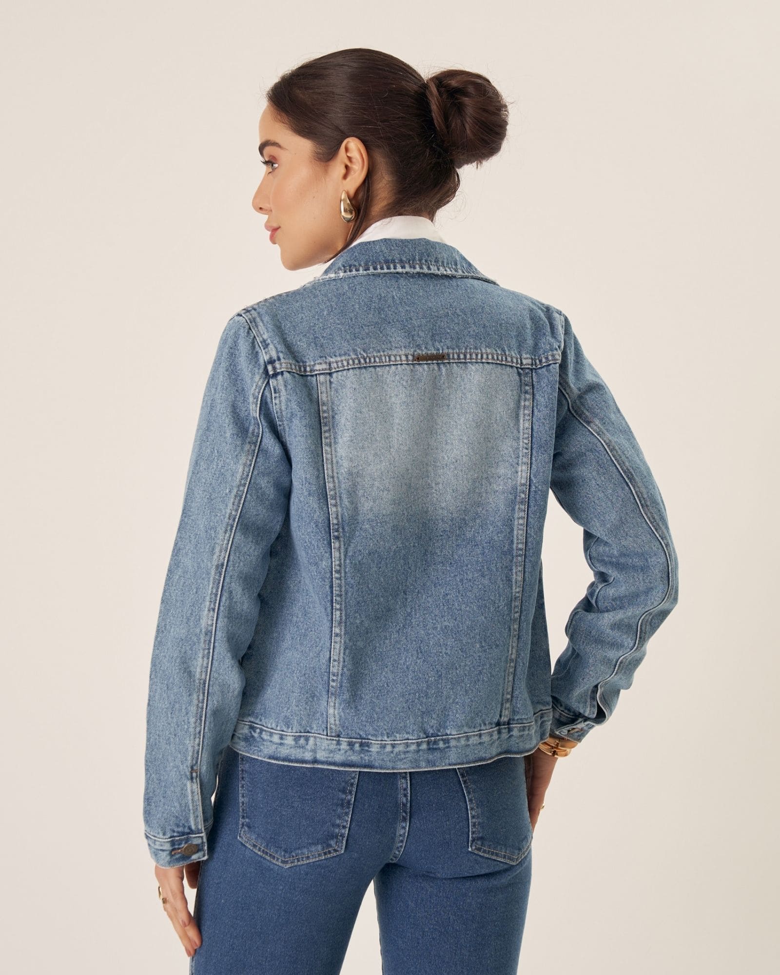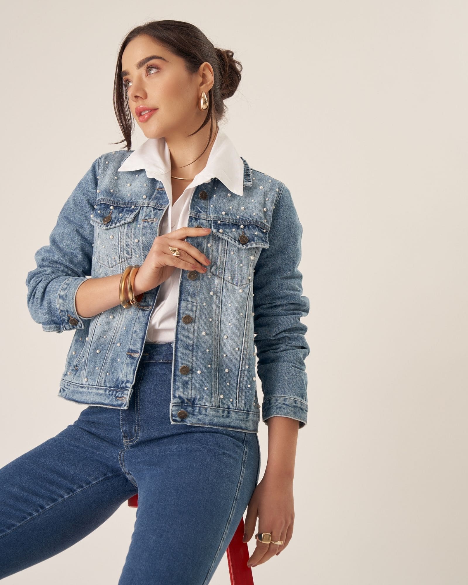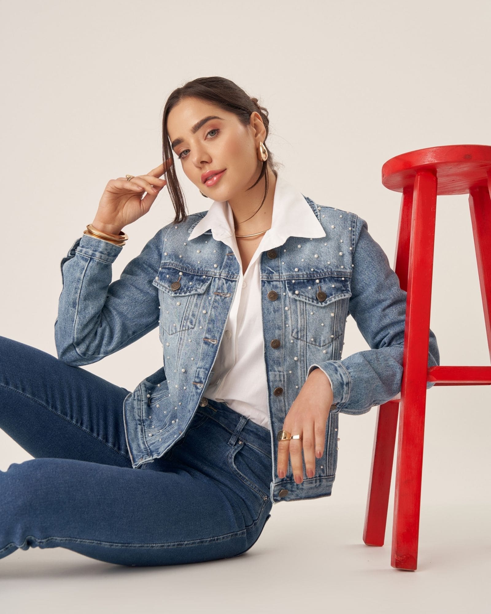 Jaqueta Jeans Tradicional com Pérolas Aplicadas